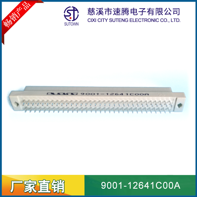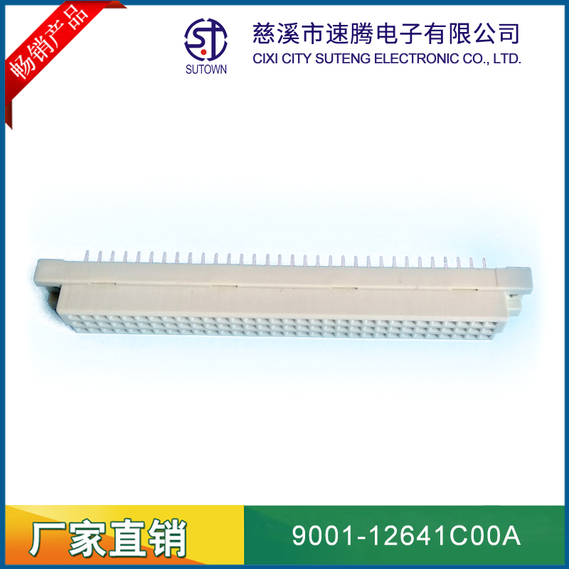 品名:歐式插座連接器型號:9001-12641C00A 規(guī)格:64pin屬性:彎針公座 備注:中間排1排間距:2.54間距
