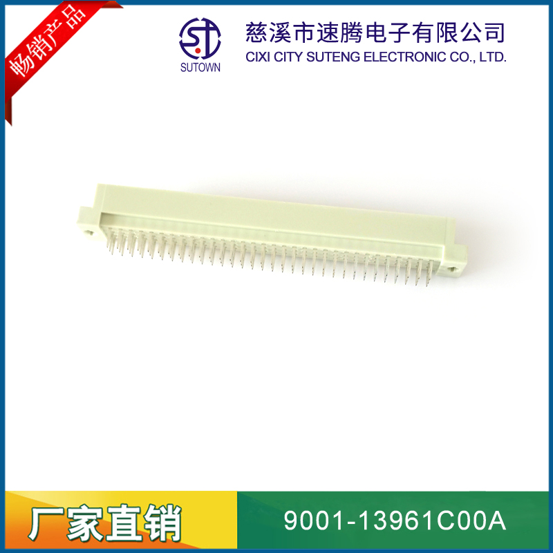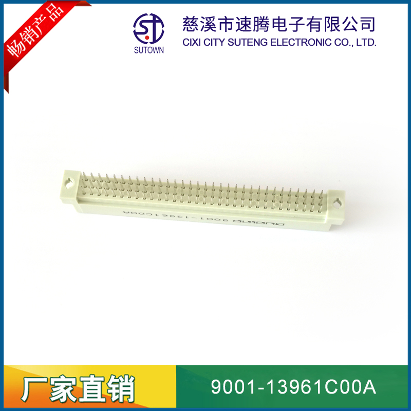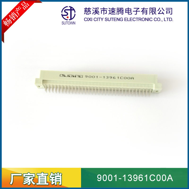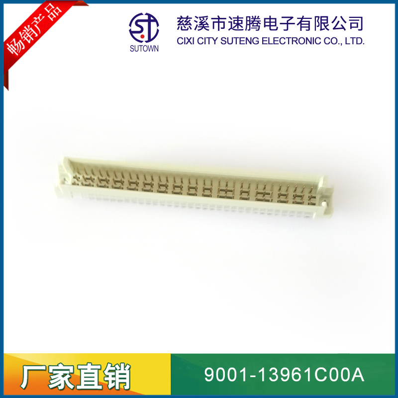 品名:歐式插座連接器型號(hào):9001-13961C00A 規(guī)格:96pin屬性:直針公頭 180°間距:2.54間距