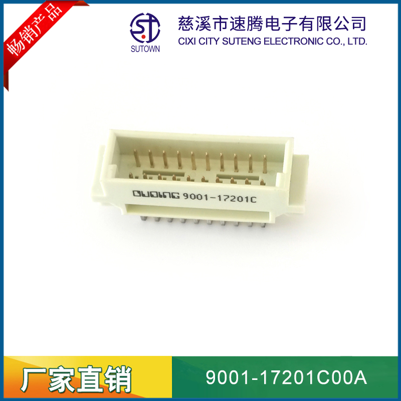 品名:歐式插座連接器型號:9001-17201C00A 規(guī)格:20pin屬性:直針公座 180°間距:2.54間距 備注:中間排1排