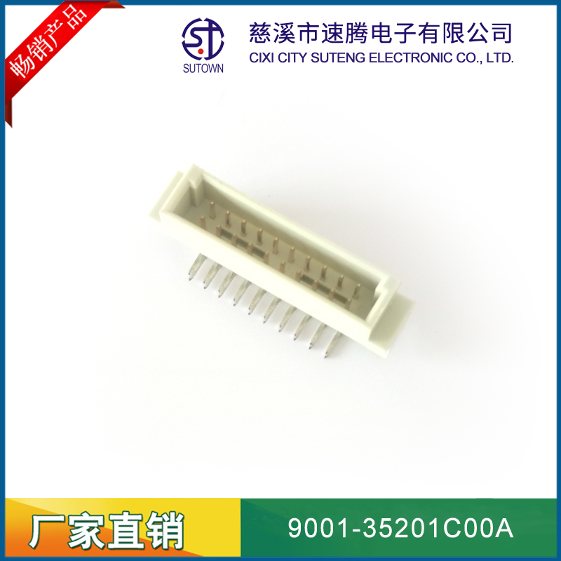 品名:歐式插座連接器型號:9001-35201C00A 規(guī)格:20pin屬性:彎針公座 90°間距:2.54間距