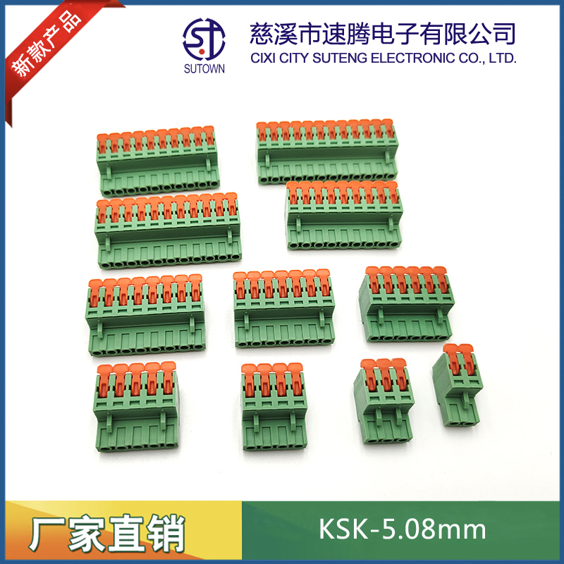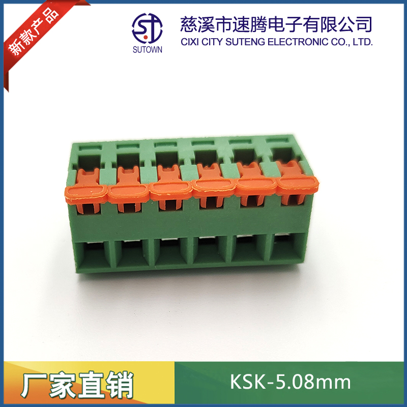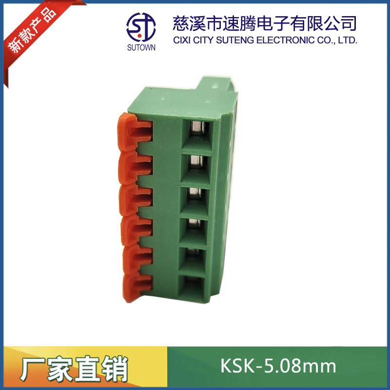型號:KSK間距:5.08mm極數(shù):2-24P電氣性能 額定電壓:300V額定電流:15A使用線徑:24-12WG(2.5mm²)環(huán)境溫度:-40℃~+105℃瞬時溫度:+250℃,5s耐電壓:AC4000V/Min接觸電阻:20MΩ絕緣電阻:5000MΩ/1000V扭矩:0.4Nm剝線長度:7-8mm材質(zhì)和電鍍 塑件:PA66,UL94V-0觸點材料:磷青銅,鍍鎳