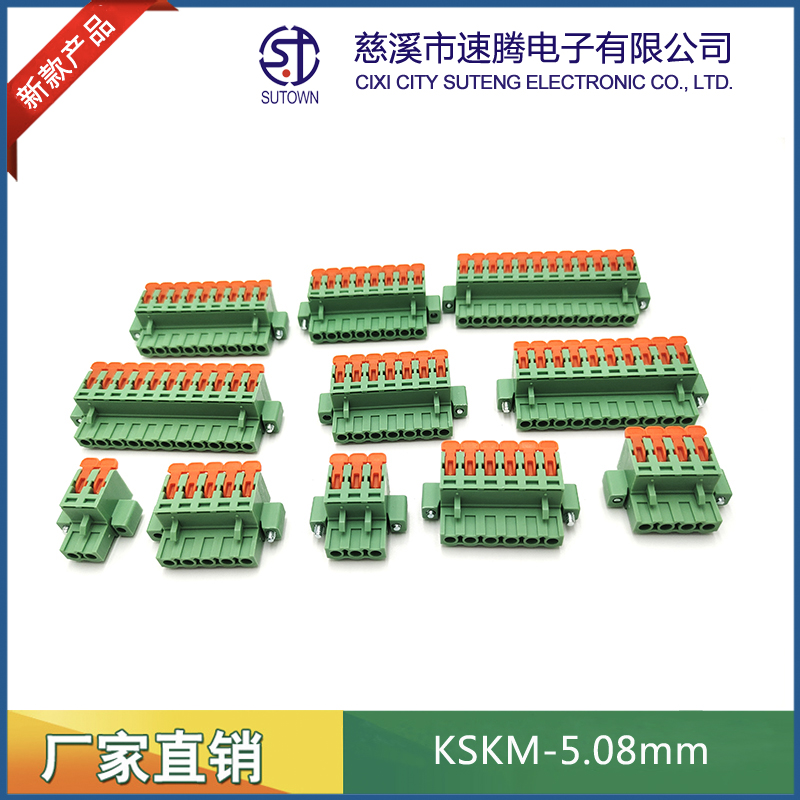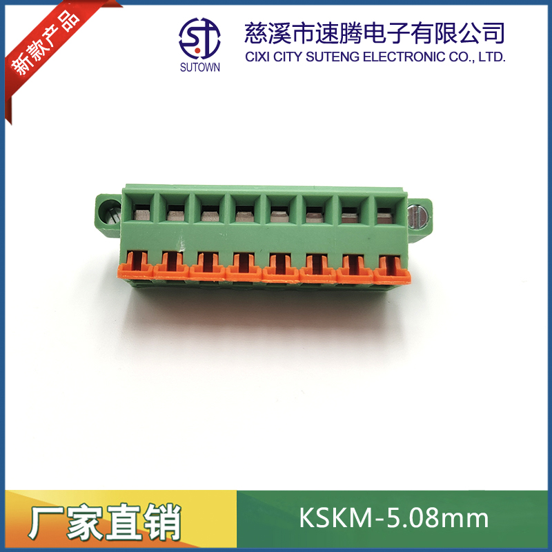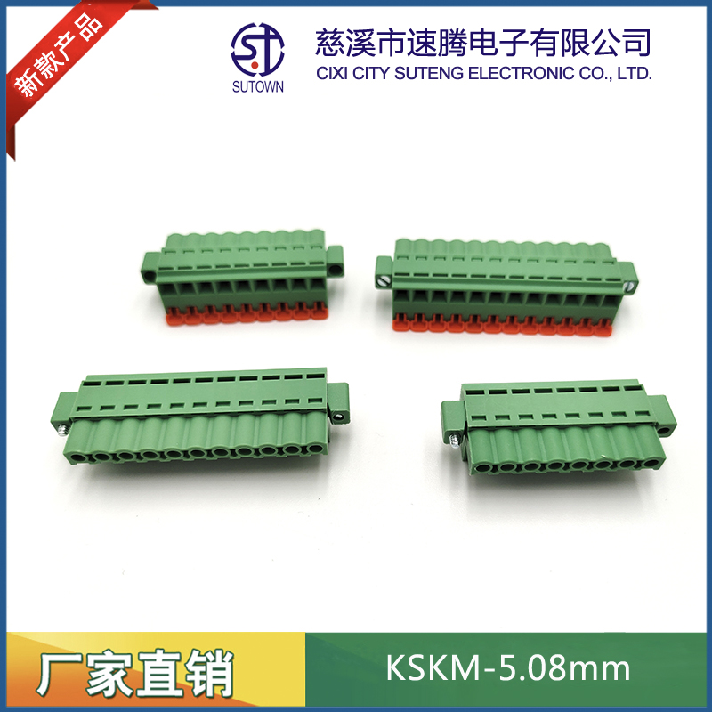 型號:KSKM間距:5.08mm極數(shù):2-24P電氣性能 額定電壓:300V額定電流:15A使用線徑:24-12WG(2.5mm2)環(huán)境溫度:-40℃~+105℃瞬時溫度:+250℃,5s耐電壓:AC4000V/Min接觸電阻:20MΩ絕緣電阻:5000MΩ/1000V扭矩:0.4Nm剝線長度:7-8mm材質(zhì)和電鍍 塑件:PA66,UL94V-0觸點(diǎn)材料:磷青銅,鍍鎳