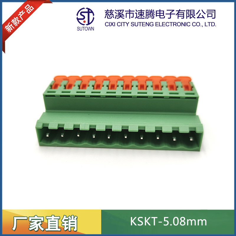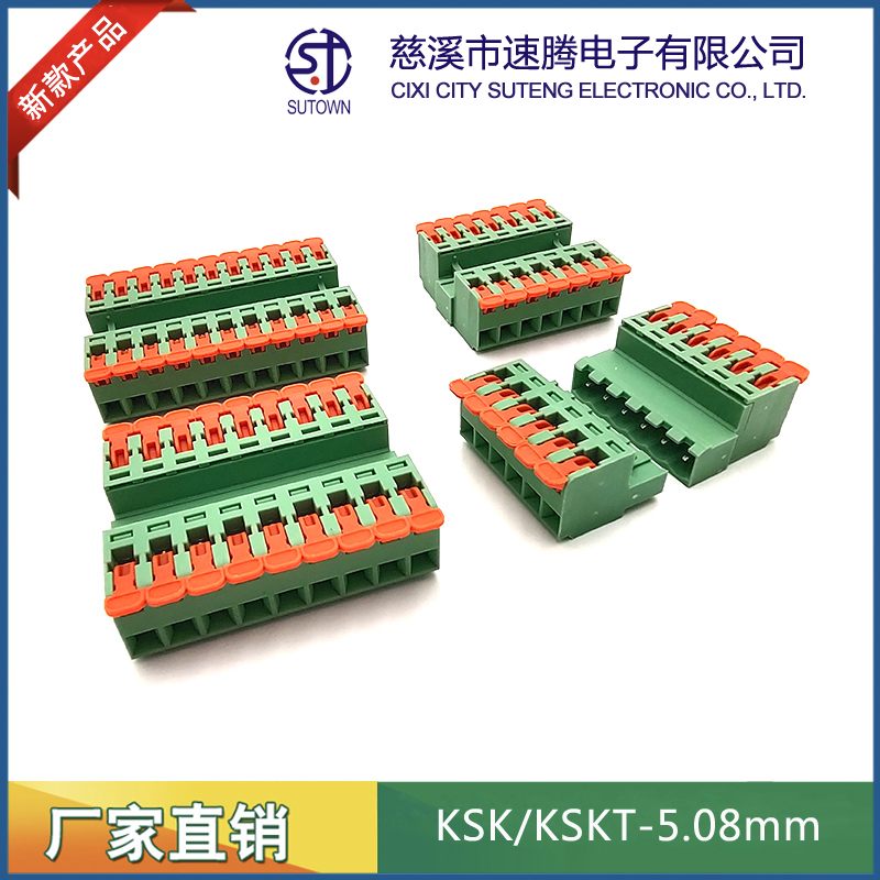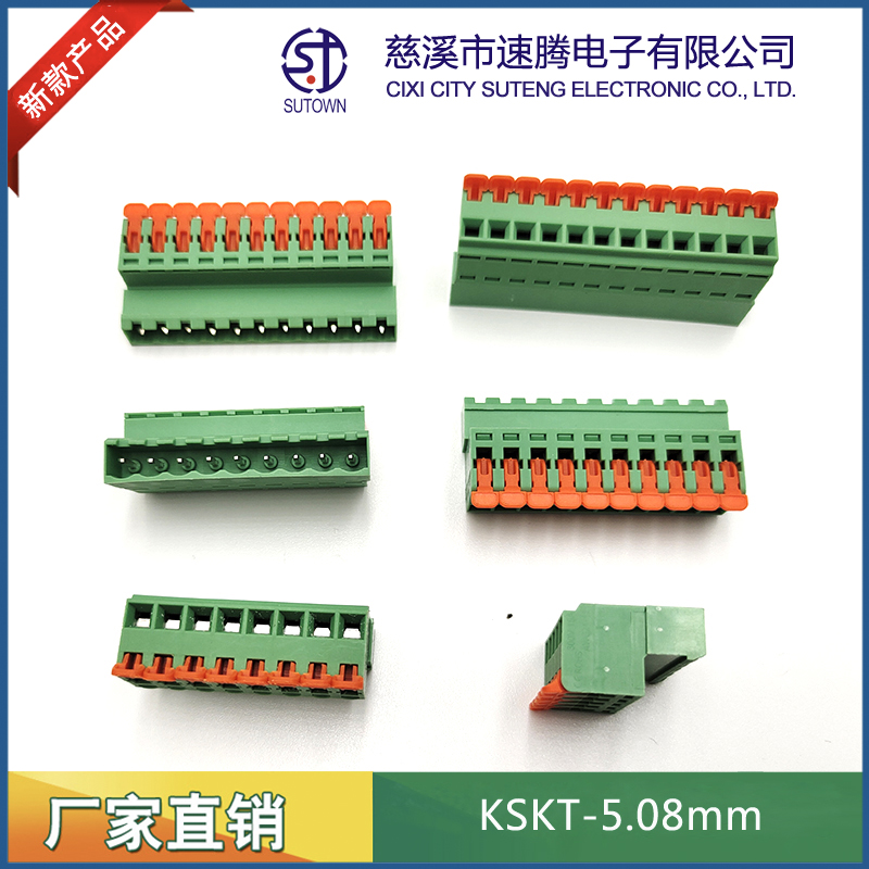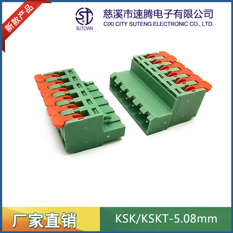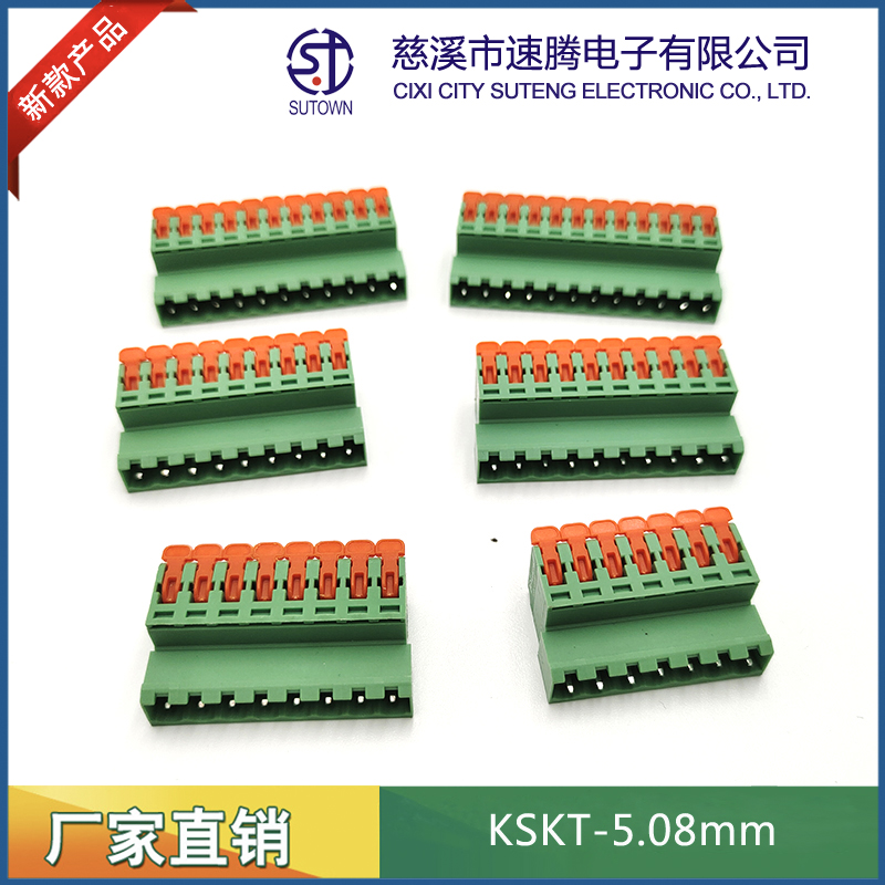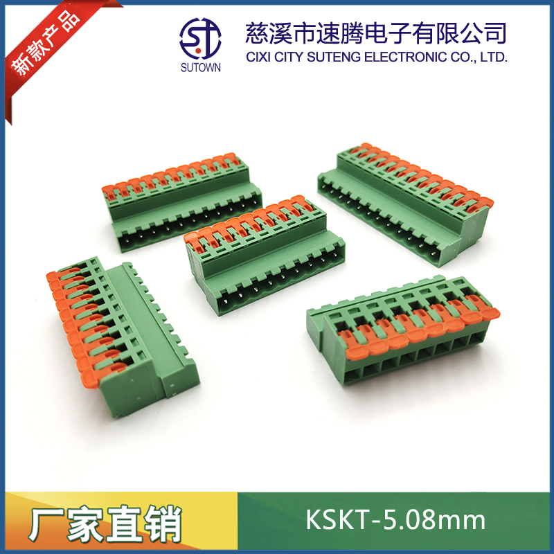 型號:KSKT-5.08mm間距:5.08mm極數(shù):2-24P電氣性能 額定電壓:300V額定電流:15A使用線徑:24-12WG(2.5mm2)環(huán)境溫度:-40℃~+105℃瞬時溫度:+250℃,5s耐電壓:AC4000V/Min接觸電阻:20MΩ絕緣電阻:5000MΩ/1000V扭矩:0.4Nm剝線長度:7-8mm材質(zhì)和電鍍 塑件:PA66,UL94V-0觸點材料:磷青銅,鍍鎳